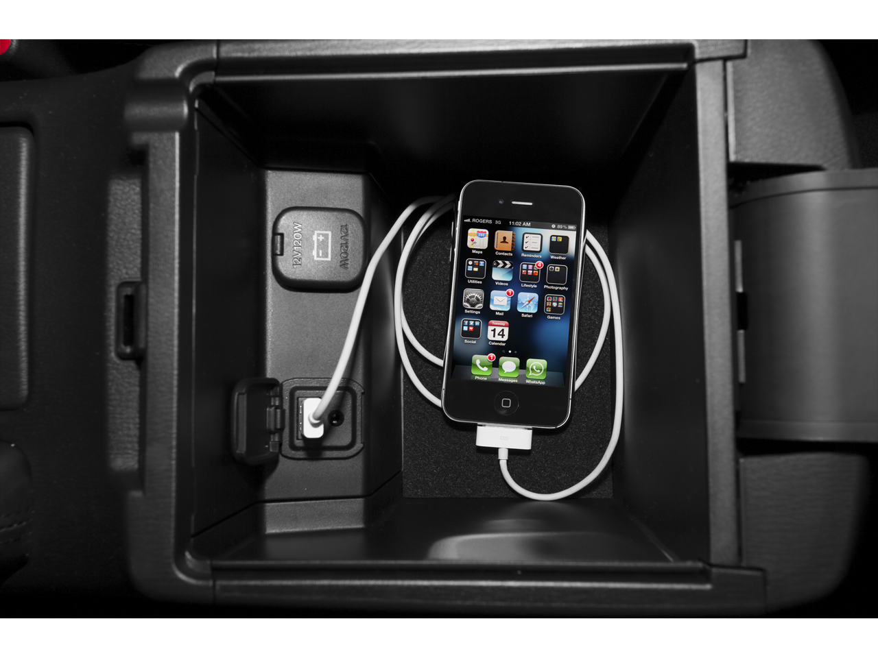• Full Floor Console w/Covered Storage, Mini Overhead Console w/Storage and 2 12V DC Power Outlets