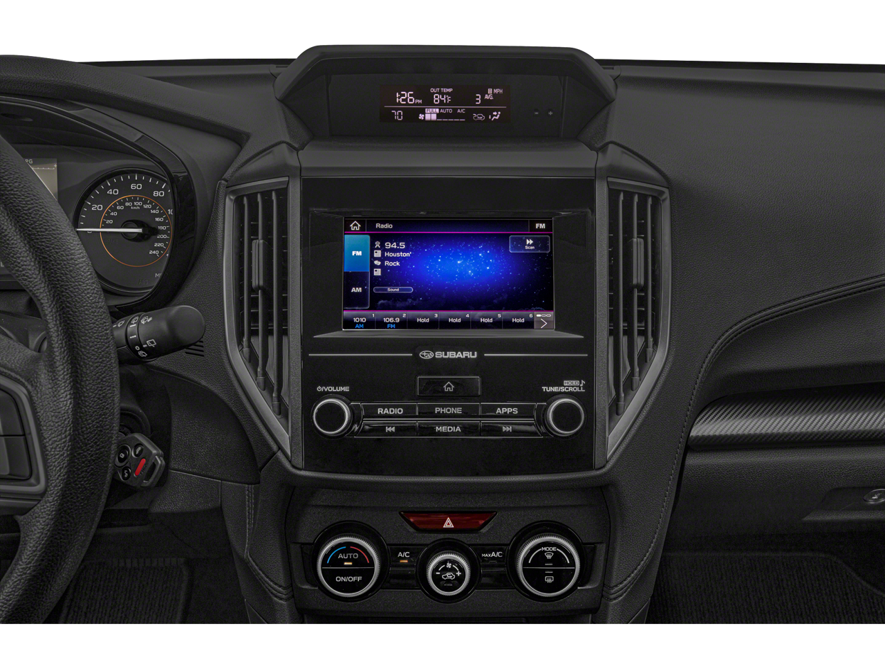 • Radio: Subaru STARLINK 6.5" Multimedia System -inc: AM/FM stereo, multi-touch gesture high resolution display screen, voice activated controls, Bluetooth® audio streaming and hands-free phone connectivity, Bluetooth® hands-free SMS text messaging connectivity, iPod control capability, smartphone integration: AHA, Android Auto, CarPlay, Pandora and STARLINK cloud applications, USB audio system update, steering wheel audio and Bluetooth® control switches, 4 speakers (2 front door and 2 rear door), 3.5mm auxiliary input jack and front USB A input/charge port
